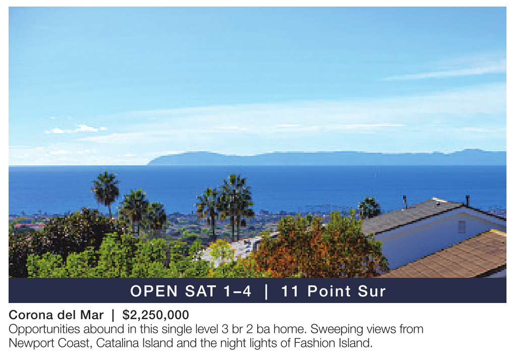 Corona del Mar | $2,250,000 Opportunities abound in this single level 3 br 2 ba home. Sweeping views from Newport Coast, Catalina Island and the night lights of Fashion Island.