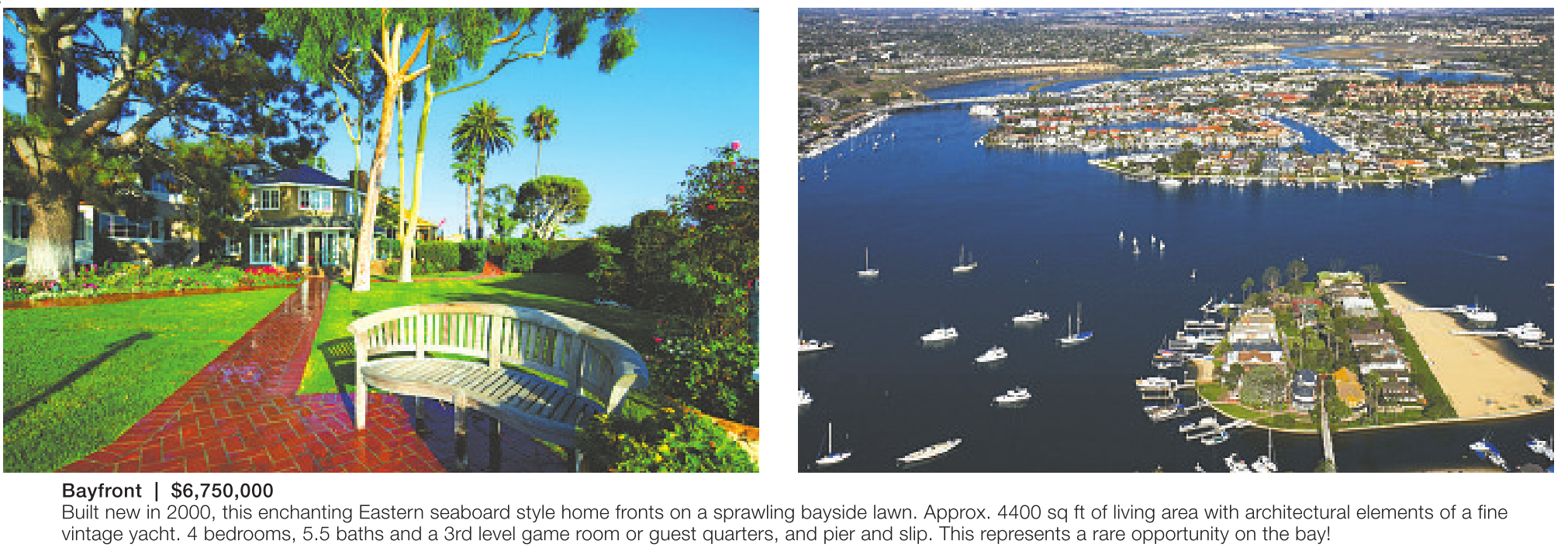 Bayfront | $6,750,000 Built new in 2000, this enchanting Eastern seaboard style home fronts on a sprawling bayside lawn. Approx. 4400 sq ft of living area with architectural elements of a fine vintage yacht. 4 bedrooms, 5.5 baths and a 3rd level game room or guest quarters, and pier and slip. This represents a rare opportunity on the bay!