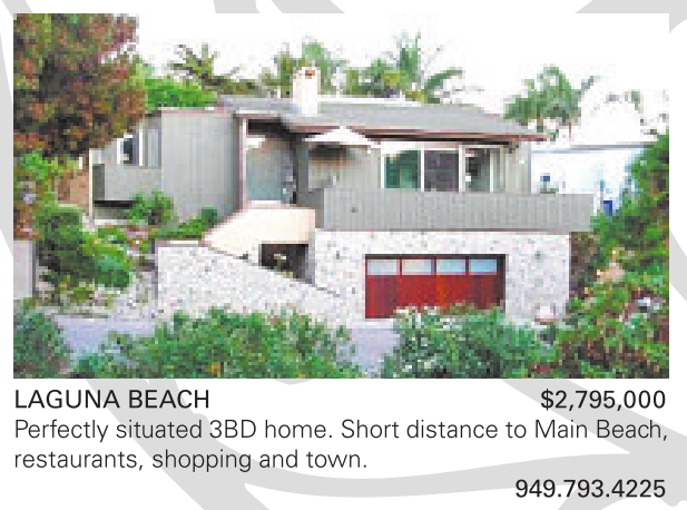 LAGUNA BEACH $2,795,000 Perfectly situated 3BD home. Short distance to Main Beach, restaurants, shopping and town.
