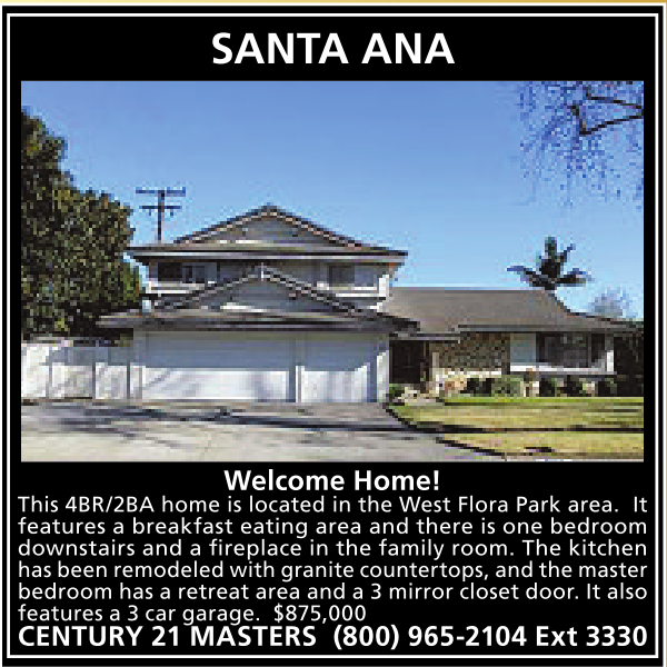 bedroom has aretreat area and a3mirror closet door. Italso features a3car garage. $875,000 CENTURY 21 MASTERS (800) 965-2104 Ext 3330