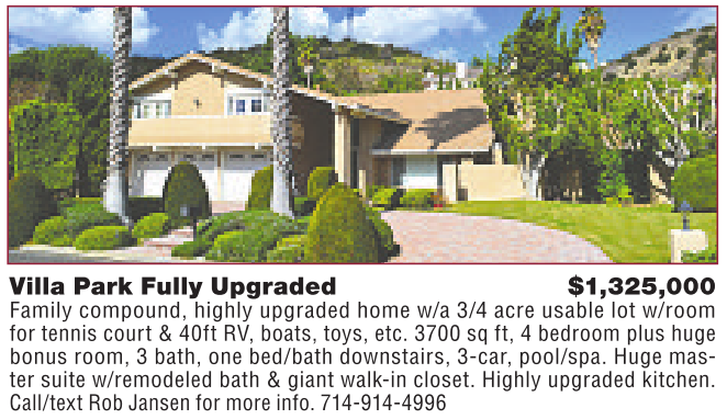 Call/textRob Jansen formoreinfo. 714-914-4996