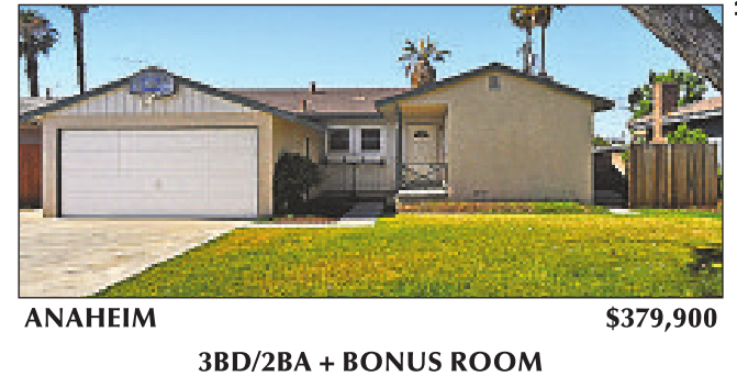 ANAHEIM $379,900 3BD/2BA + BONUS ROOM