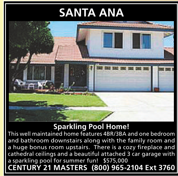 cathedral ceilings and abeautiful attached 3car garage with asparkling pool for summer fun! $575,000 CENTURY 21 MASTERS (800) 965-2104 Ext 3760