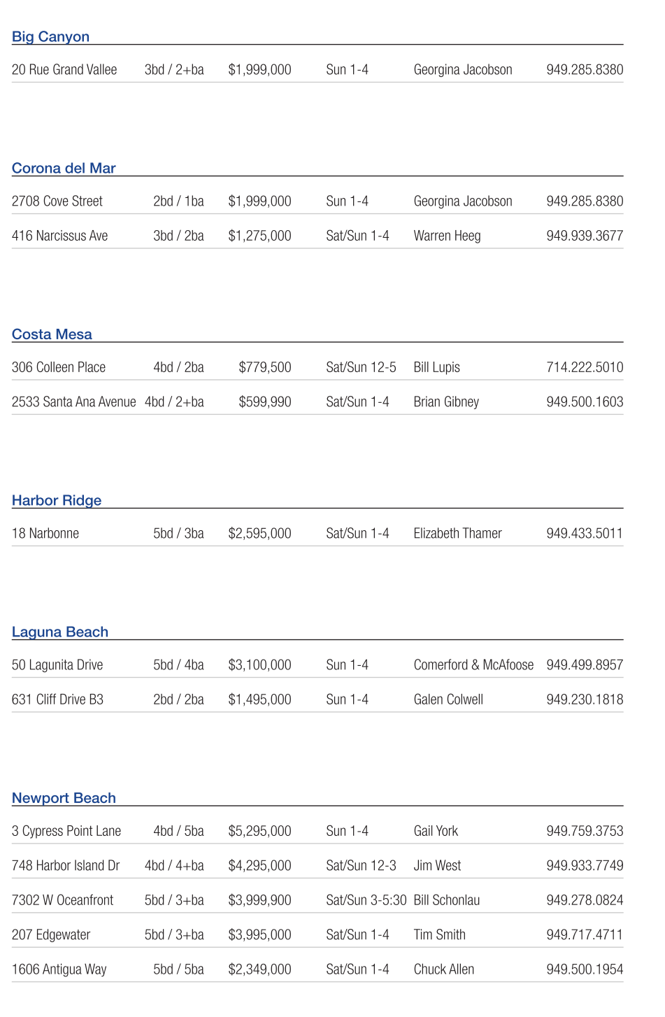 207 Edgewater 5bd /3+ba $3,995,000 Sat/Sun 1-4 TimSmith 949.717.4711
