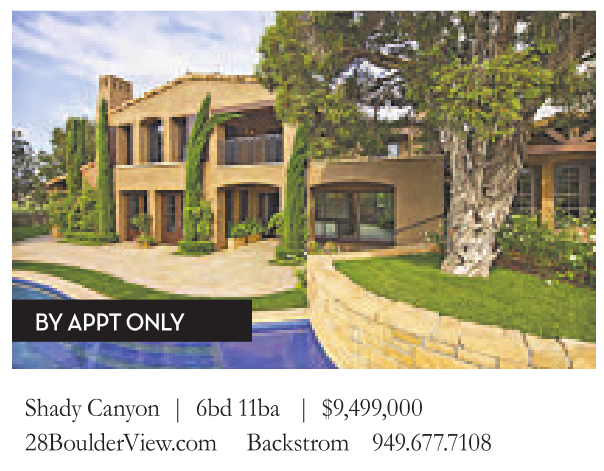 Shady Canyon | 6bd 11ba | $9,499,000 28BoulderView.com Backstrom 949.677.7108