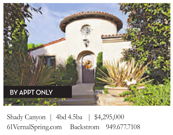 Shady Canyon | 4bd 4.5ba | $4,295,000 61VernalSpring.com Backstrom 949.677.7108