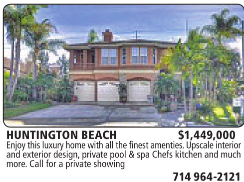 HUNTINGTON BEACH $1,449,000 Enjoy this luxury home with all the finest amenties.Upscale interior and exterior design, private pool &spa Chefs kitchen and much more.Call for aprivate showing 714964-2121