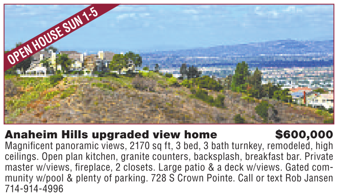 Anaheim Hills upgraded view home $600,000 Magnificent panoramic views, 2170 sq ft,3bed, 3bath turnkey, remodeled, high