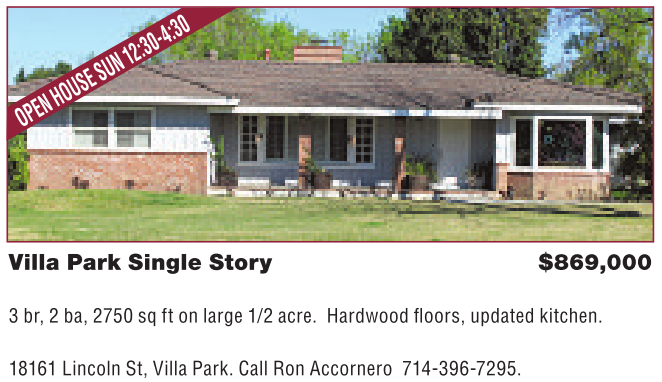 18161 Lincoln St, VillaPark. Call Ron Accornero 714-396-7295.