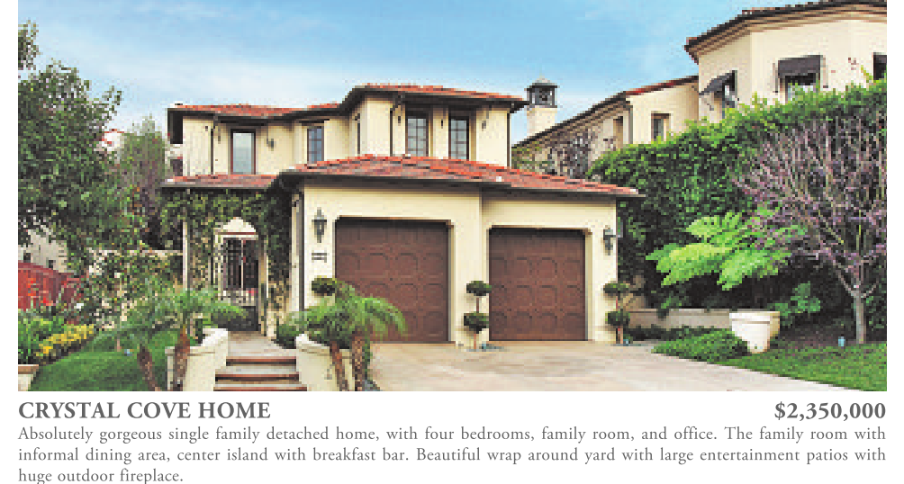 CRYSTAL COVE HOME $2,350,000 Absolutely gorgeous single family detached home, with four bedrooms, family room, and office. The family room with
