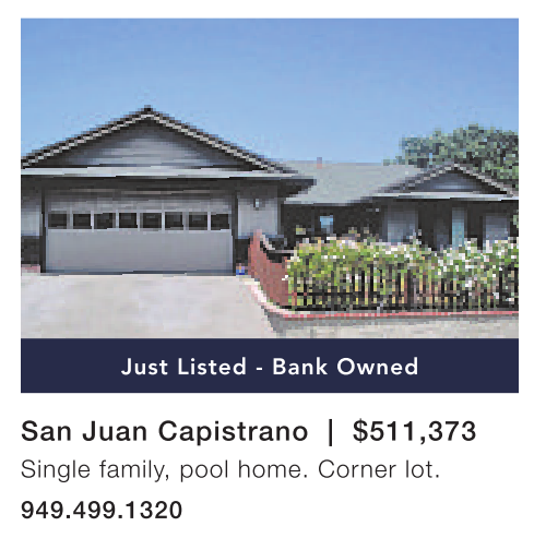 San Juan Capistrano | $511,373 Single family, pool home. Corner lot. 949.499.1320