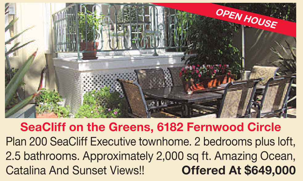 SeaCliff on the Greens, 6182 Fernwood Circle Plan 200 SeaCliff Executive townhome. 2 bedrooms plus loft, 2.5 bathrooms. Approximately 2,000 sq ft. Amazing Ocean, Catalina And Sunset Views!! Offered At $649,000