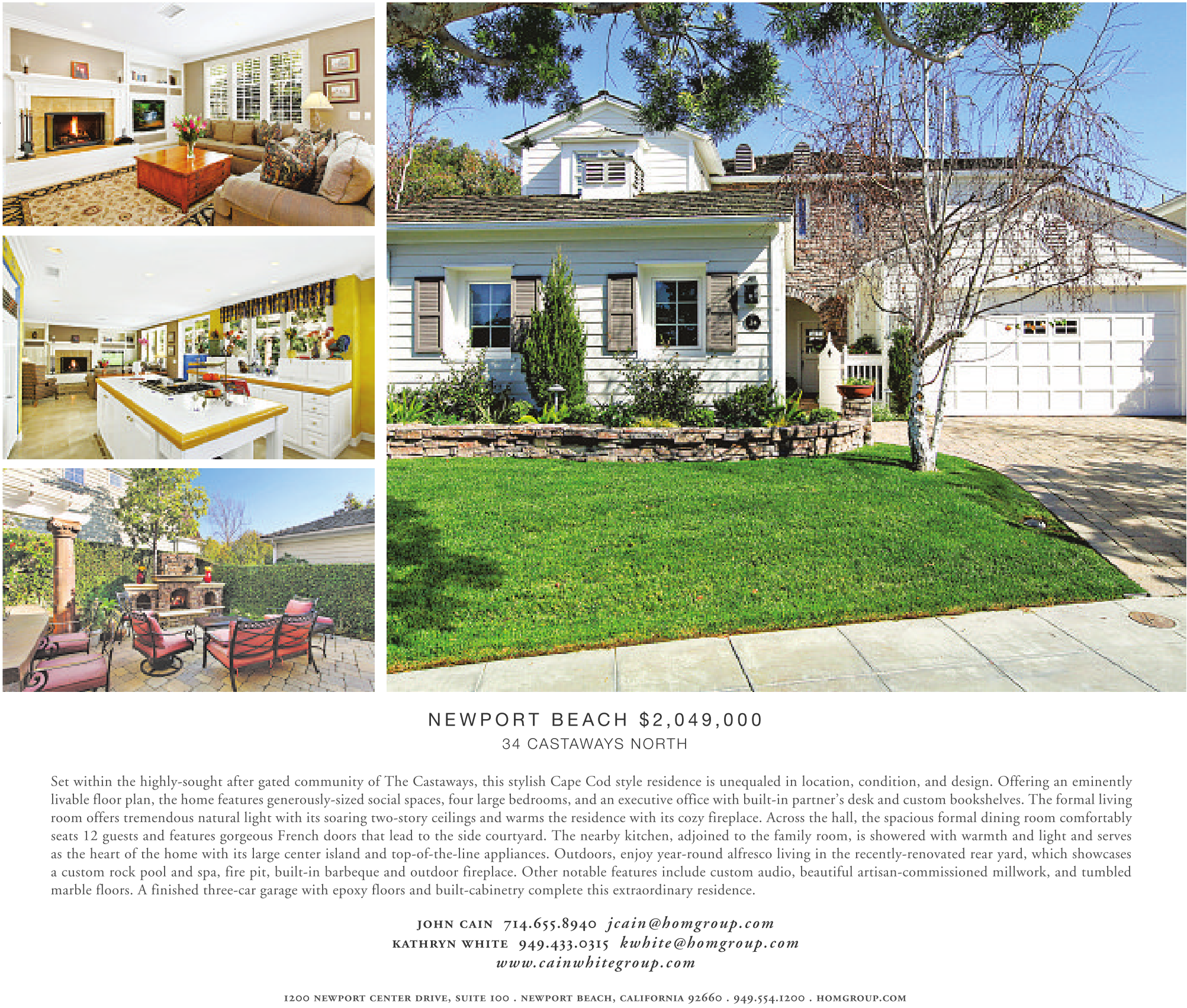 john cain 714.655.8940 jcain@homgroup.com kathryn white 949.433.0315 kwhite@homgroup.com www.cainwhitegroup.com