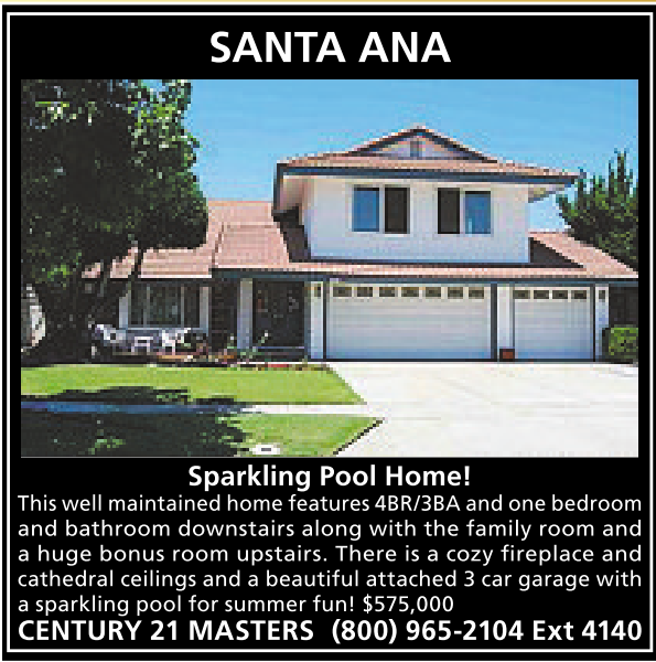 cathedral ceilings and abeautiful attached 3car garage with asparkling pool for summer fun! $575,000 CENTURY 21 MASTERS (800) 965-2104 Ext 4140