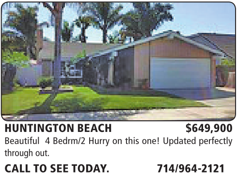 HUNTINGTON BEACH $649,900 Beautiful 4 Bedrm/2 Hurry on this one! Updated perfectly through out. CALL TO SEE TODAY. 714/964-2121