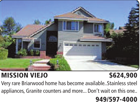 MISSION VIEJO $624,900 Very rare Briarwood home has become available..Stainless steel appliances, Granite counters and more... Don’t wait on this one..