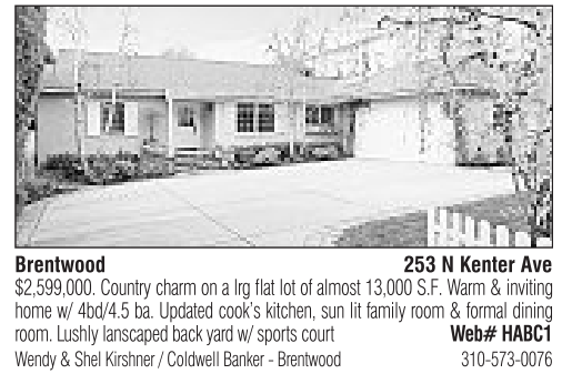 Wendy &Shel Kirshner /Coldwell Banker -Brentwood 310-573-0076