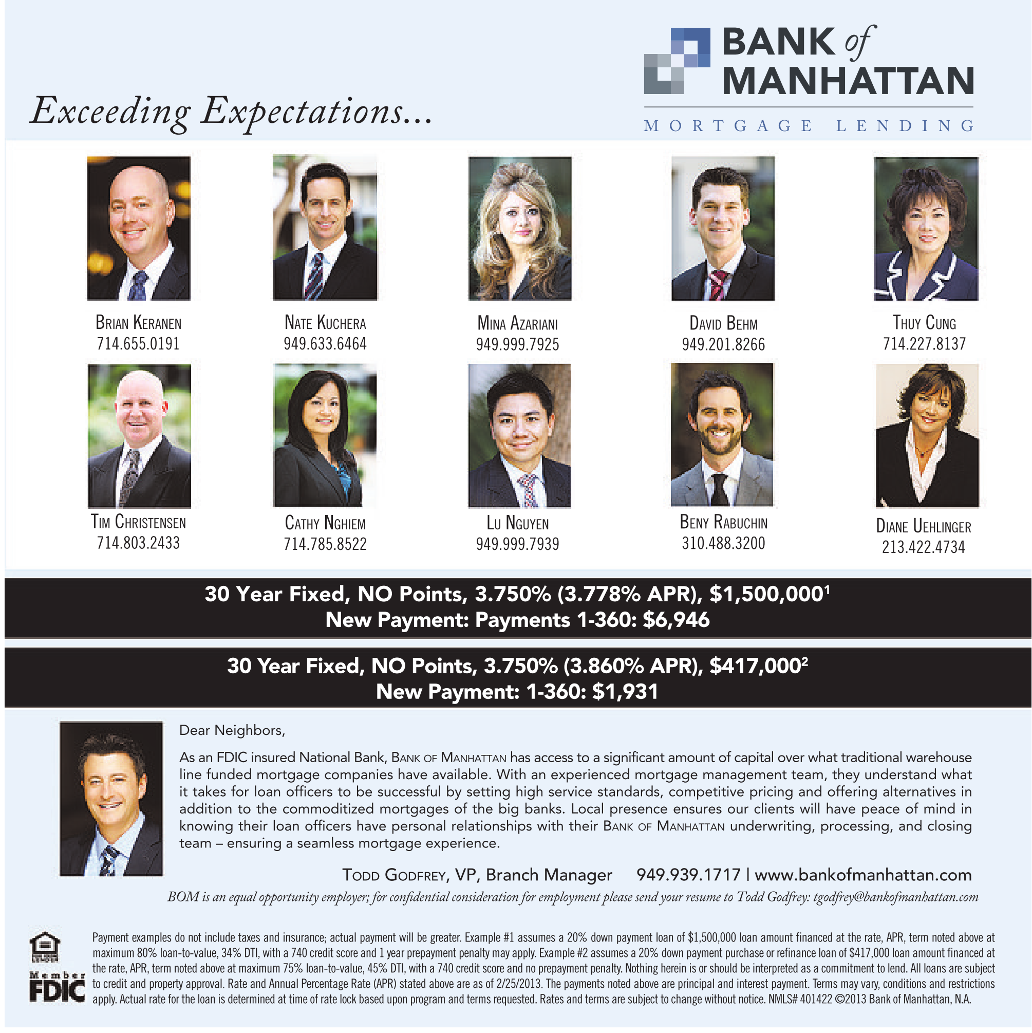 TODD GODFREY, VP, Branch Manager 949.939.1717 | www.bankofmanhattan.com BOM is an equal opportunity employer; for confidential consideration for employment please send your resume to Todd Godfrey: tgodfrey@bankofmanhattan.com