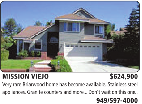 MISSION VIEJO $624,900 Very rare Briarwood home has become available..Stainless steel appliances, Granite counters and more... Don’t wait on this one..