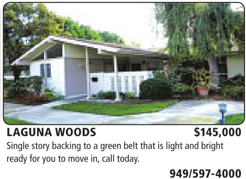 LAGUNA WOODS $145,000 Single story backing to agreen belt that is light and bright ready for you to move in, call today.