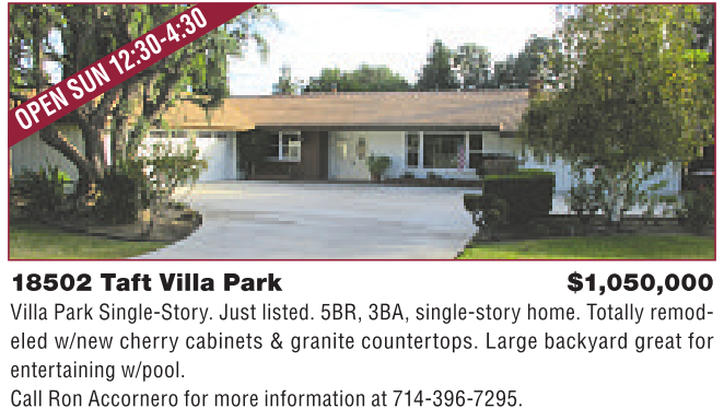 entertaining w/pool. Call Ron Accornero formoreinformation at 714-396-7295.