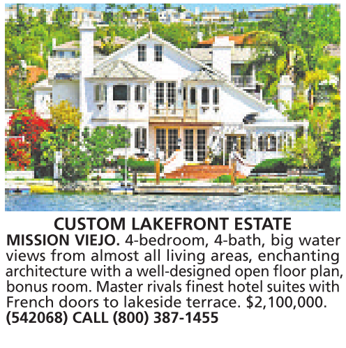 CUSTOM LAKEFRONT ESTATE MISSION VIEJO. 4-bedroom, 4-bath, big water