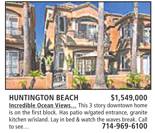 HUNTINGTON BEACH $1,549,000 Incredible Ocean Views… This 3story downtown home is on the first block. Has patio w/gated entrance, granite kitchen w/island.Lay in bed &watchthe wavesbreak.Call to see… 714-969-6100