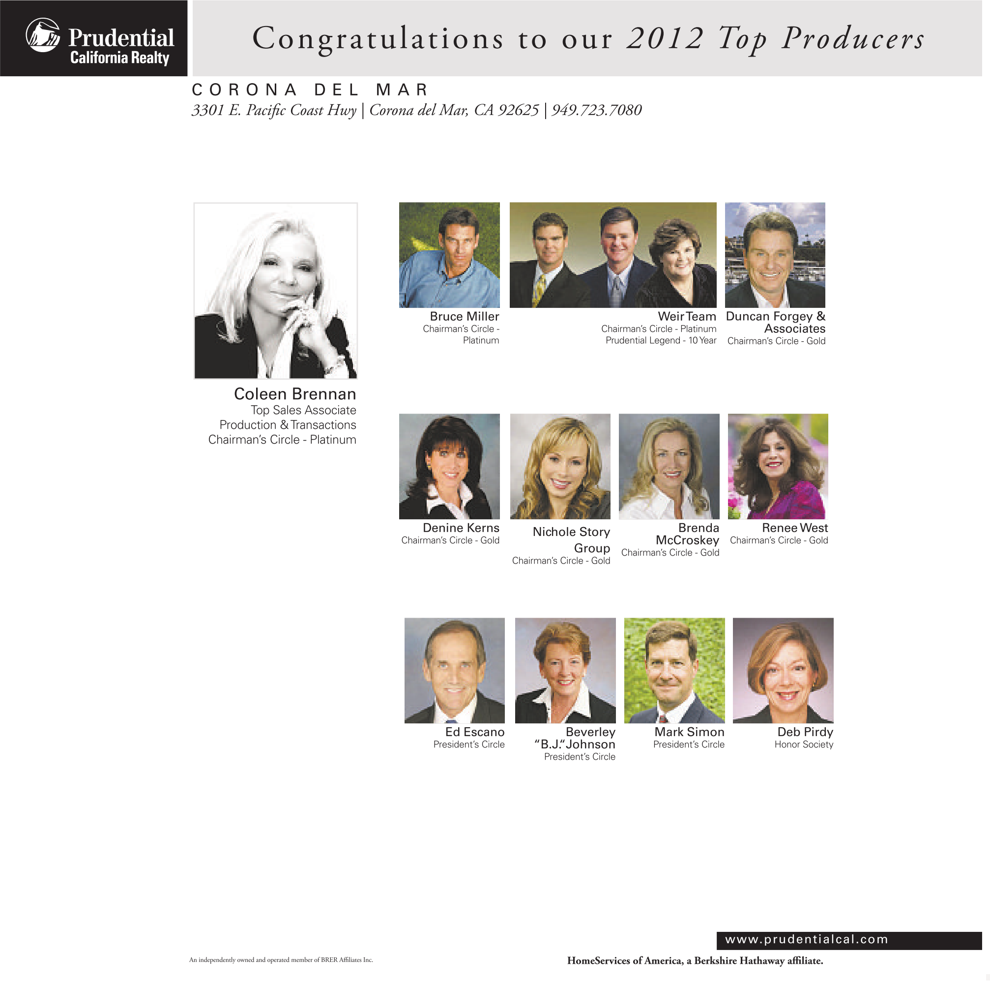 C o n g r a t u l a t i o n s t o o u r 2 0 1 2 To p Pr o d u c e r s