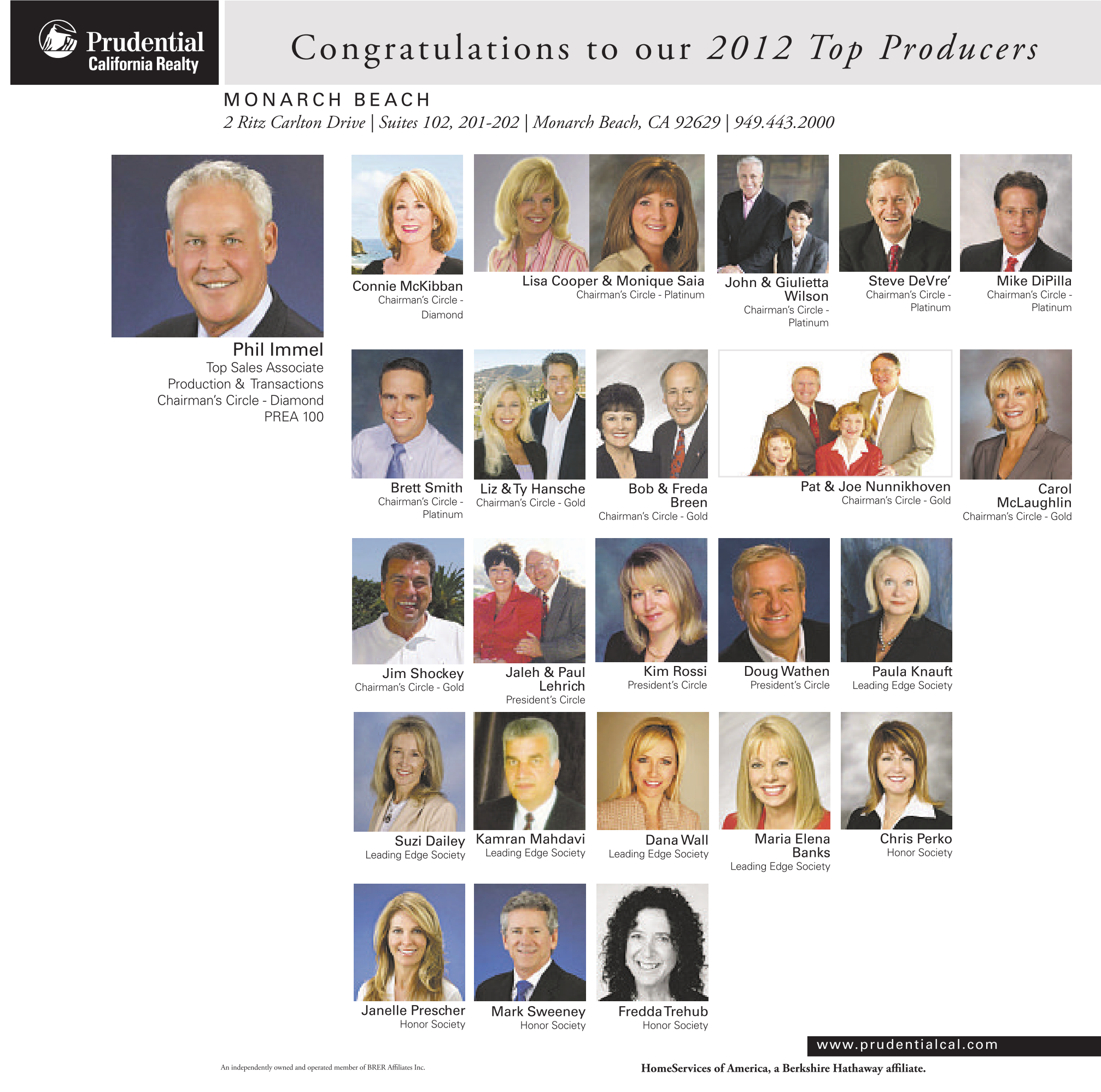 C o n g r a t u l a t i o n s t o o u r 2 0 1 2 To p Pr o d u c e r s