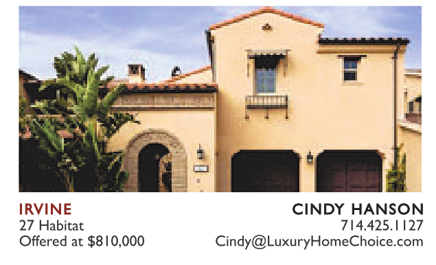 CINDY HANSON 714.425.1127 Cindy@LuxuryHomeChoice.com
