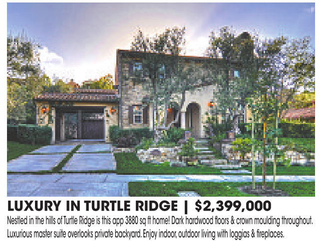 LUXURY IN TURTLE RIDGE | $2,399,000 Nestled in the hills of Turtle Ridge is this app 3880 sq ft home! Dark hardwood floors &crown moulding throughout. Luxurious master suite overlooks private backyard. Enjoy indoor,outdoor living with loggias &fireplaces.