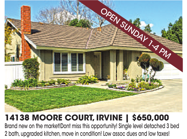 14138 MOORE COURT,IRVINE | $650,000 Brand new onthe market!Dont miss this opportunity! Single level detached 3bed 2bath, upgraded kitchen, move in condition! Low assoc dues and low taxes!