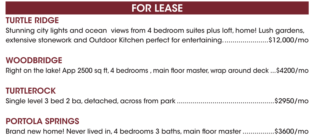 TURTLEROCK Single level 3 bed 2 ba, detached, across from park.................................................$2950/mo