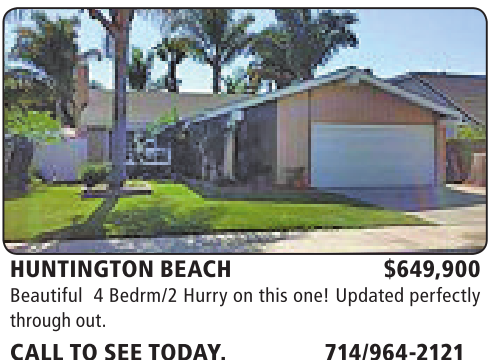 HUNTINGTON BEACH $649,900 Beautiful 4 Bedrm/2 Hurry on this one! Updated perfectly throughout. CALL TO SEE TODAY. 714/964-2121