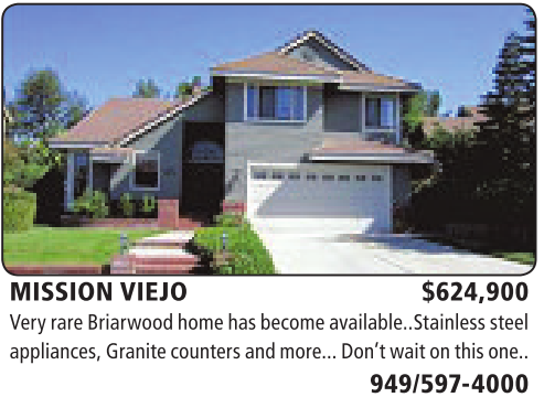 MISSION VIEJO $624,900 Very rare Briarwood homehas become available..Stainlesssteel appliances,Granite countersand more... Don’twaitonthis one..