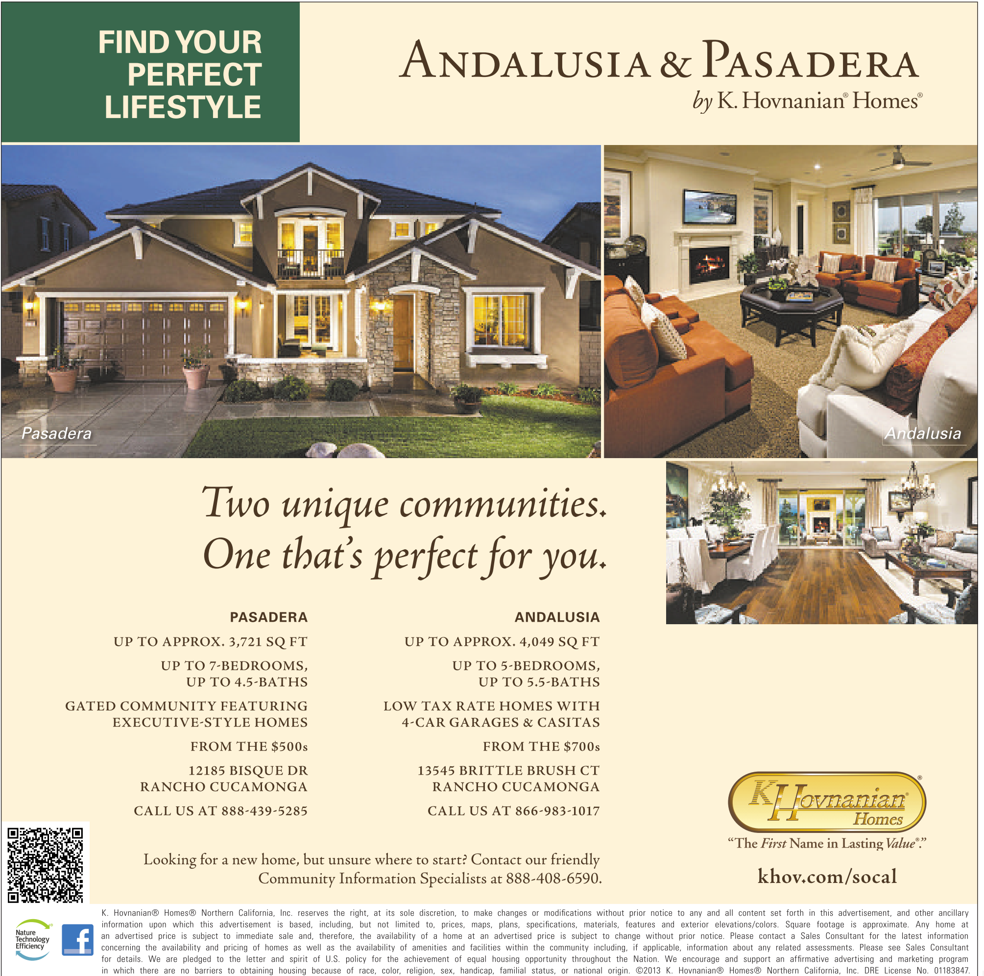 K. Hovnanian® Homes® Northern California, Inc. reserves the right, at its sole discretion, to make changes or modifications without prior notice to any and all content set forth in this advertisement, and other ancillary information upon which this advertisement is based, including, but not limited to, prices, maps, plans, specifications, materials, features and exterior elevations/colors. Square footage is approximate. Any home at an advertised price is subject to immediate sale and, therefore, the availability of a home at an advertised price is subject to change without prior notice. Please contact a Sales Consultant for the latest information concerning the availability and pricing of homes as well as the availability of amenities and facilities within the community including, if applicable, information about any related assessments. Please see Sales Consultant for details. We are pledged to the letter and spirit of U.S. policy for the achievement of equal housing opportunity throughout the Nation. We encourage and support an affirmative advertising and marketing program in which there are no barriers to obtaining housing because of race, color, religion, sex, handicap, familial status, or national origin. ©2013 K. Hovnanian® Homes® Northern California, Inc. DRE License No. 01183847.