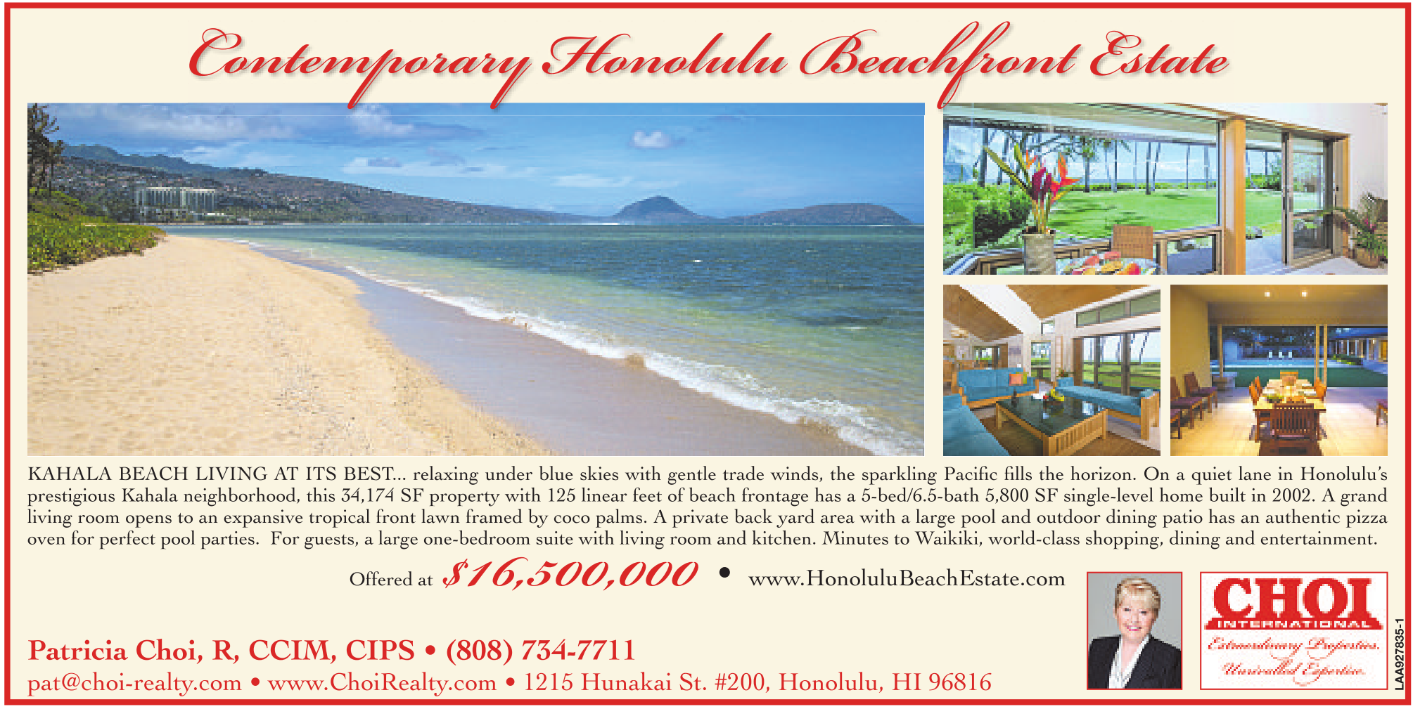 pat@choi-realty.comwww.ChoiRealty.com • 1215 Hunakai St. #200, Honolulu, HI 96816