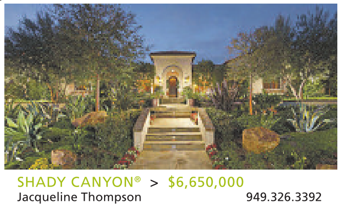 SHADY CANYON ® > $6,650,000 Jacqueline Thompson 949.326.3392