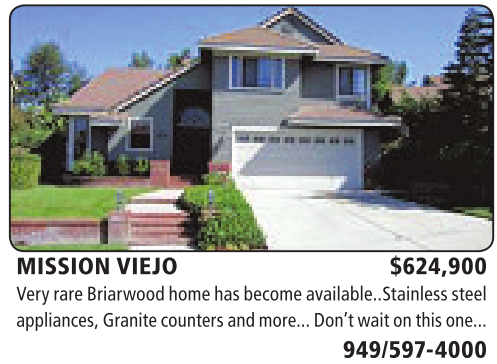 MISSION VIEJO $624,900 Very rare Briarwood homehas become available..Stainlesssteel appliances,Granite countersand more... Don’twaitonthis one...