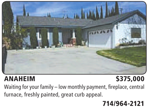 ANAHEIM $375,000 Waitingfor your family –low monthly payment, fireplace,central furnace, freshlypainted, great curb appeal.