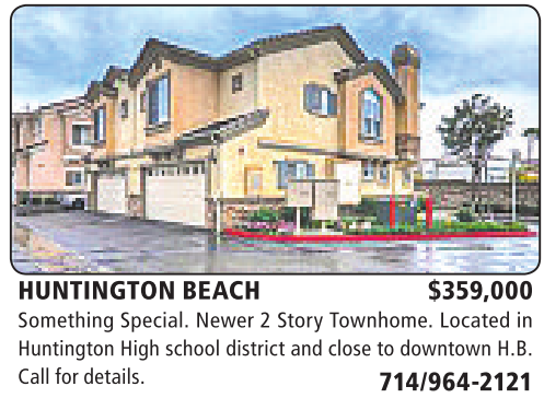 HUNTINGTON BEACH $359,000 Something Special. Newer 2 Story Townhome. Located in Huntington High school district and close to downtown H.B. Call fordetails. 714/964-2121