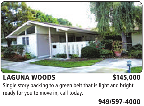 LAGUNA WOODS $145,000 Single storybackingtoagreen belt that is lightand bright readyfor youtomove in,calltoday.