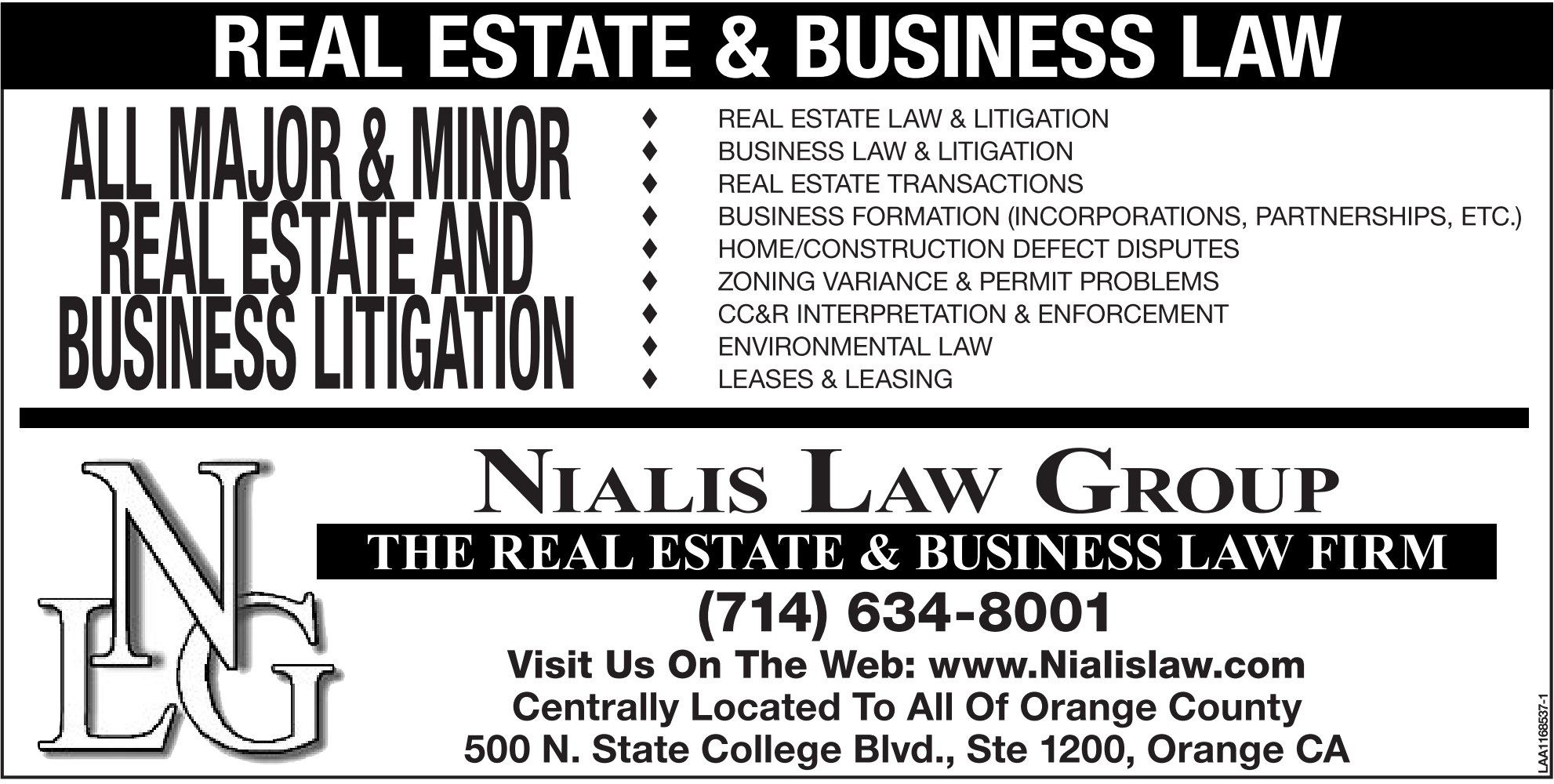 Visit Us On The Web: www.Nialislaw.com Centrally Located To All Of Orange County 500 N. State College Blvd., Ste 1200, Orange CA