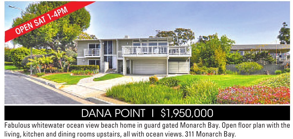 Fabulous whitewaterocean view beachhomeinguard gatedMonarch Bay. Openfloorplanwiththe living,kitchen anddiningroomsupstairs, allwithocean views. 311Monarch Bay.