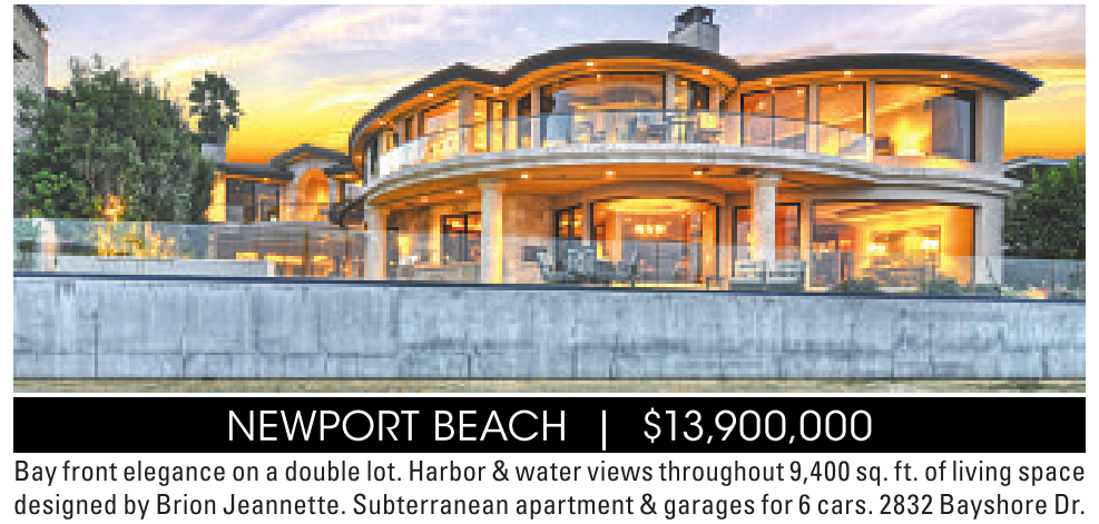 Bayfront eleganceonadoublelot.Harbor&waterviews throughout 9,400sq. ft.ofliving space designedbyBrion Jeannette. Subterranean apartment&garages for6cars. 2832 Bayshore Dr.