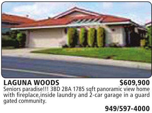 LAGUNA WOODS $609,900 Seniors paradise!!! 3BD 2BA 1785 sqft panoramic view home with fireplace,inside laundry and 2-car garage in a guard gatedcommunity.