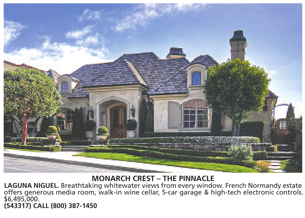 MONARCH CREST – THE PINNACLE LAGUNA NIGUEL. Breathtaking whitewater views from every window.French Normandy estate