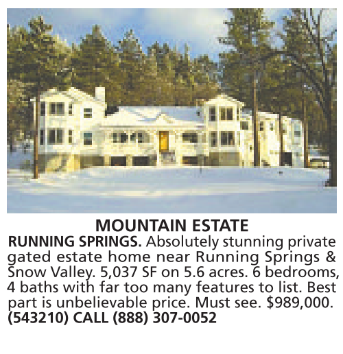 gated estate home near Running Springs & Snow Valley. 5,037 SF on 5.6 acres. 6 bedrooms,