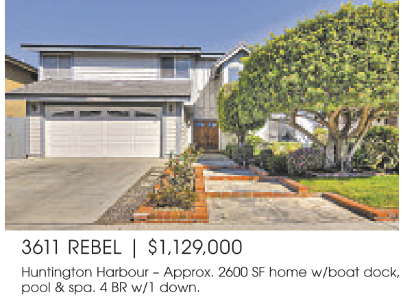 Huntington Harbour – Approx. 2600 SF home w/boat dock, pool & spa. 4 BR w/1 down.