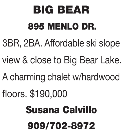 A charming chalet w/hardwood floors. $190,000 Susana Calvillo 909/702-8972